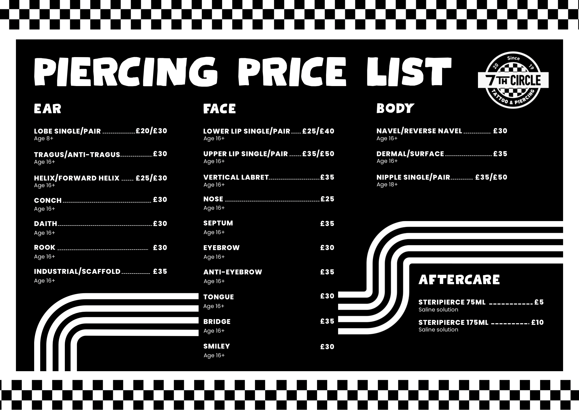 • Piercing Price List